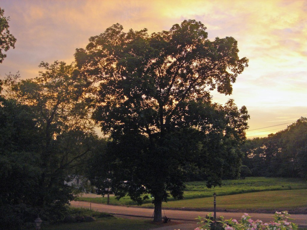 The Whispering Tree is an old Hickory tree that stands at the end of my driveway. Sunsets are its backdrop, adding to its majestic presence. I have many trees in my yard, but The Whispering Tree is my favorite and the most magical.